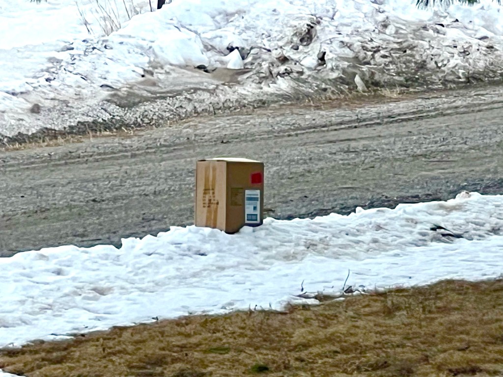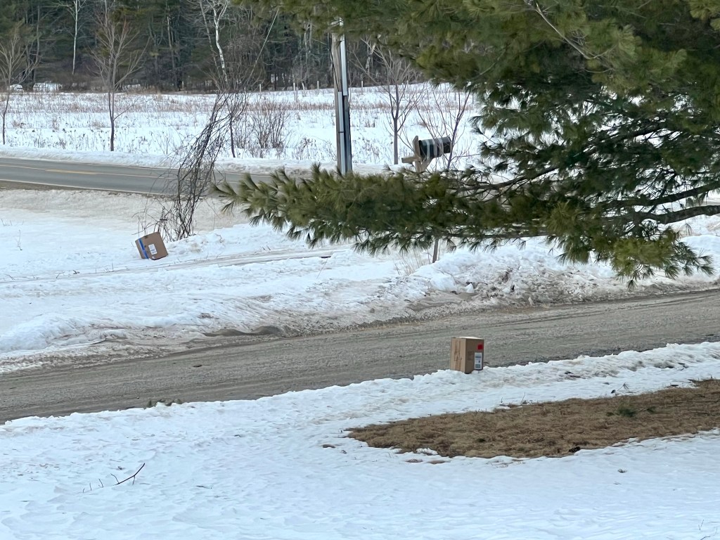 They’d just been dumped in the snow by delivery drivers too lazy to drive the distance to our neighbor’s houses.