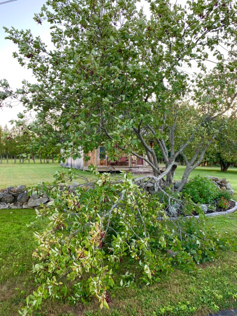 It’s full of cherries. But they’re choke cherries and poisonous if eaten. No fun there.