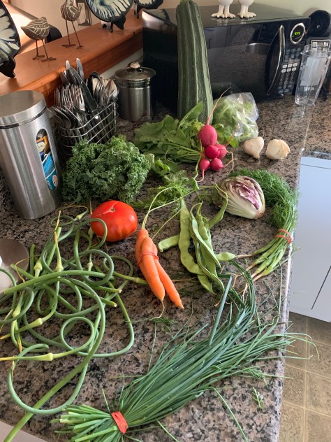 4. I was wondering about the role of the cat in stalking the wild zucchini. Is it a tracker and pointer – shoot here ! Or is it a retriever – bagged another one Oberon fetch ! One last question. Are wild zucchini hunted from a blind or a tree stand ? Silly me I never realized garlic scapes could cooked. Always thought they needed to be cut and tossed in the garbage so the whole yard did not fill up with garlic. Thanks
