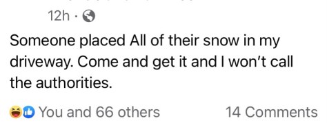 Some asshat leaves snow at the end of my driveway too! It’s a pandemic!!