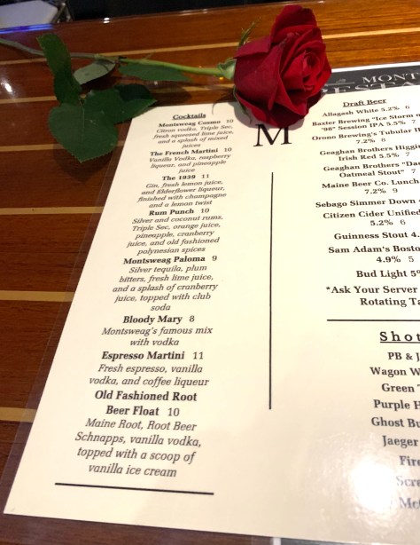 We settled happily at the bar (the husband’s preferred spot because one of the bartenders was a Marine which can lead to hours long conversations) and I tucked into a few delightful Rum Punches. We had appetizers that I forgot to photograph… garlic Parmesan wings for the husband, creamy clam chowder for me… and were awaiting our meals when this older couple sat down across from us.