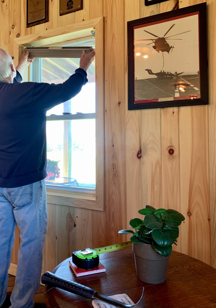 Because after he installed this one, which had the best fit… only 3/8ths of an inch off… he plopped his big bullet back on the sill.