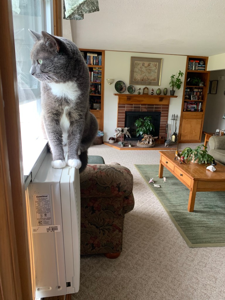When your human puts an air conditioner in your favorite bird watching window….