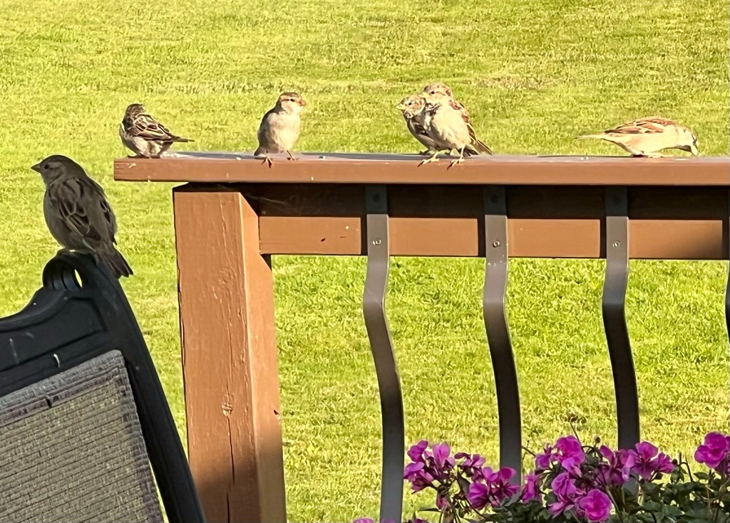 They perch on the deck railing and patio furniture… driving him absolutely insane when he’s on the back of the couch.