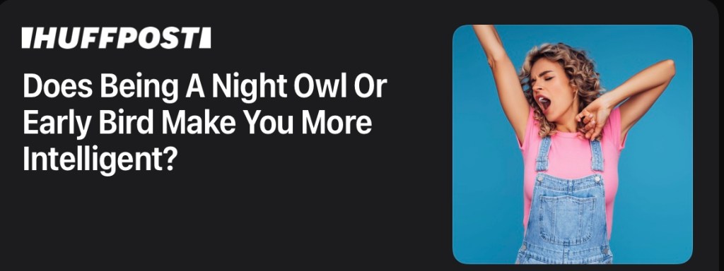 On the night owl one: Once you hit 50, you stop caring about IQ points and start to worry about “hours slept without waking”, so the night owl loses again!