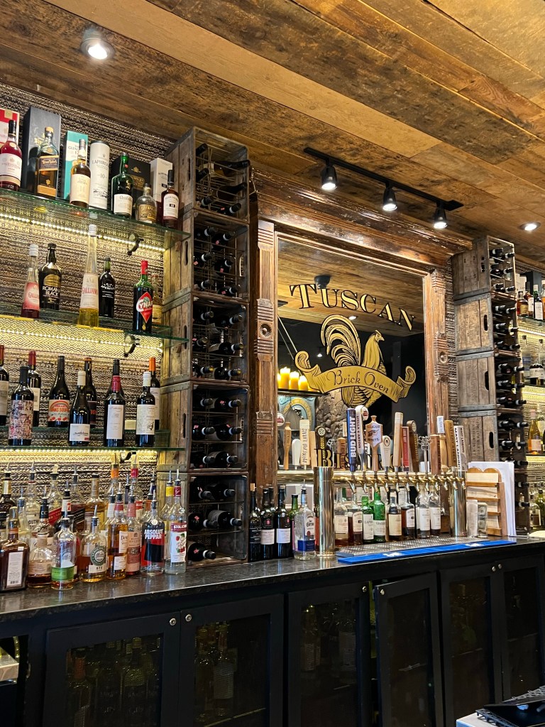 Right across the street from LL Beans in the busy village of Freeport…the Tuscan Brick Oven Bistro is always packed with a long wait to be seated. We thought showing up at 2:00 in the afternoon would afford us some elbow room, but no. There was a 45 minute wait for a table which made my husband take a direct route to the bar.
