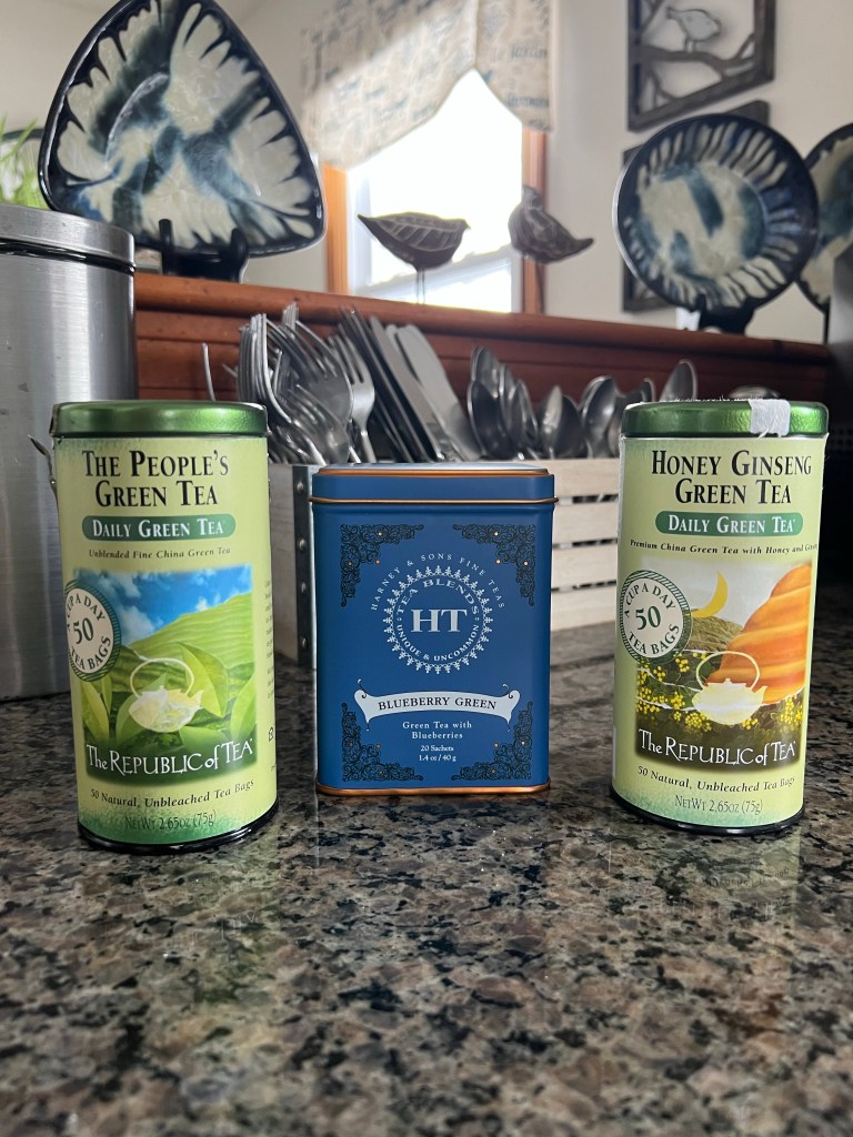 My cupboard is full of boxes, canisters and envelopes of marvelous varieties with flavors to satisfy anyone… except my husband who suddenly decided he wanted to drink green tea.