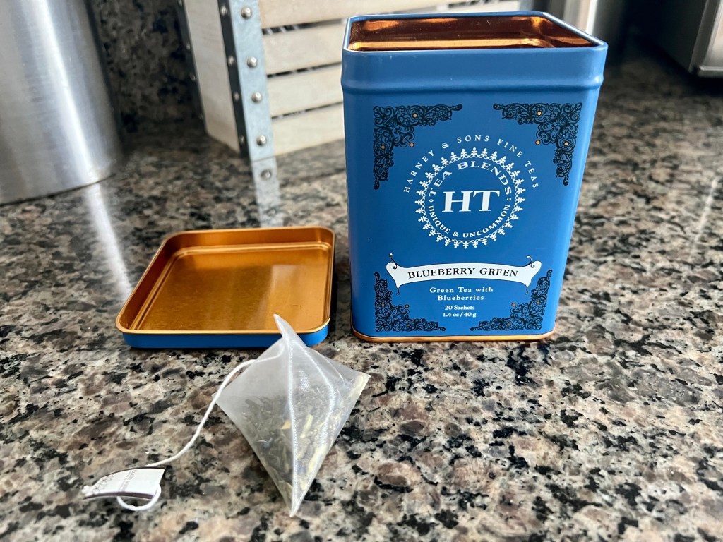 And while I had little interest, I opened the Harney and Sons blueberry green tea tin just because.