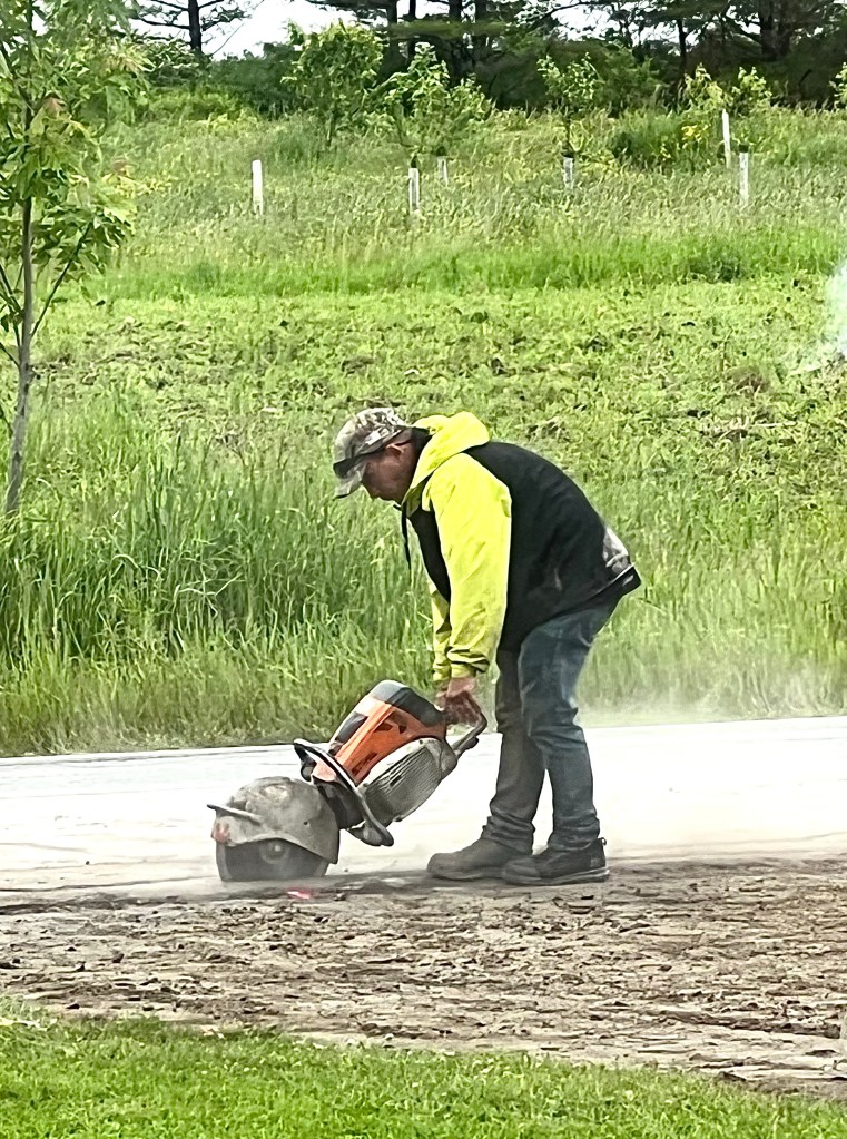 And then the crew whipped out a big power saw and started cutting away part of the road.