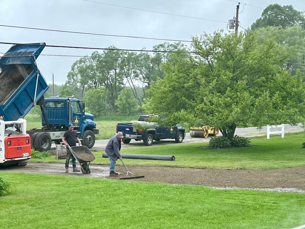 Which we were told was a little too wet to pave so it would have to sit for a few days to dry.