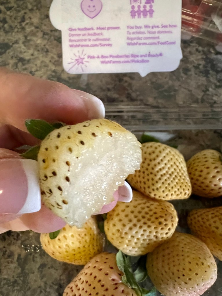 Called pineberries, they’re really just a pale pink variant of strawberry but I figured they’d look nice on the fruit platter I make every weekend for healthy munching in the man cave.