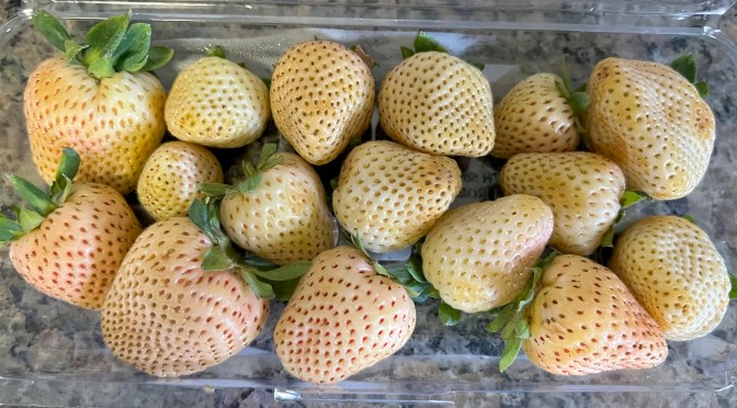 Called pineberries, they’re really just a pale pink variant of strawberry but I figured they’d look nice on the fruit platter I make every weekend for healthy munching in the man cave.