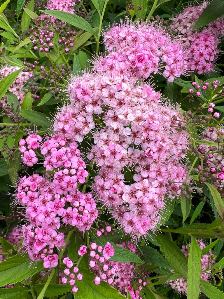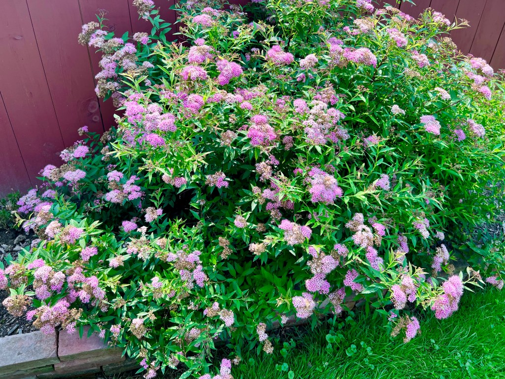 I planted this flowering bush when we first moved in over 20 years ago and damned if I can remember what it’s called.