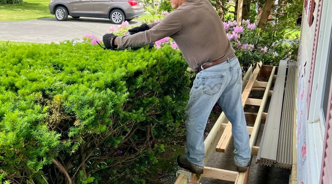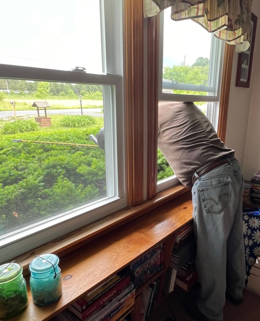 That’s how I trim the bushes in front of my house – through the porch windows.