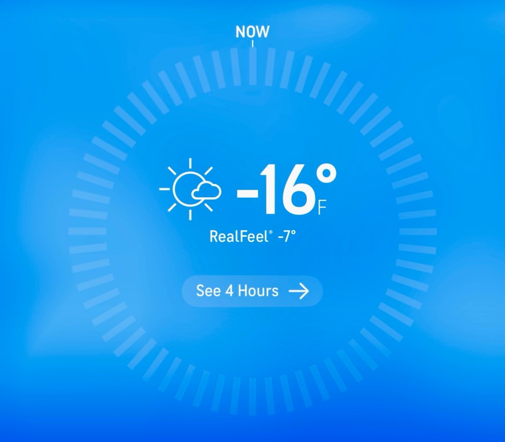 We are having our first “snow emergency” of the year. It snowed most of yesterday and last night and it is now bright and crisp. 3º F this morning. It’s supposed to turn cold early next week after some more snow. There is nothing like a bright and clear winter morning with fresh snow! (How is it that the “RealFeel” temperature on your screen shot is warmer than the actual temperature?)