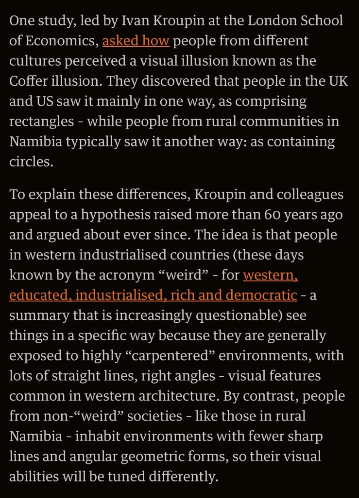 3. The whole thing about people seeing circles and why Westerners don’t is triggering my BS meter.