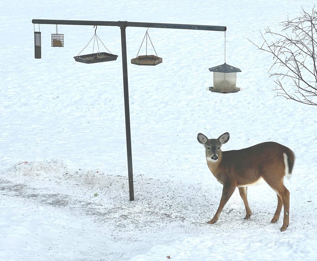 Backyard visitor raiding the bird feeders.