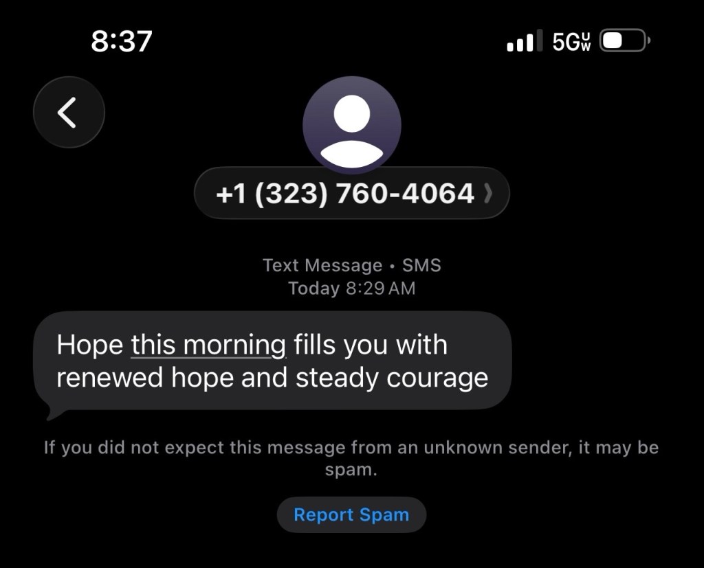 And a spam text with a more interesting message than, “Hi. How are you?”.