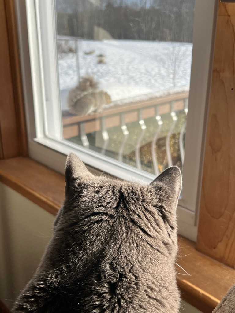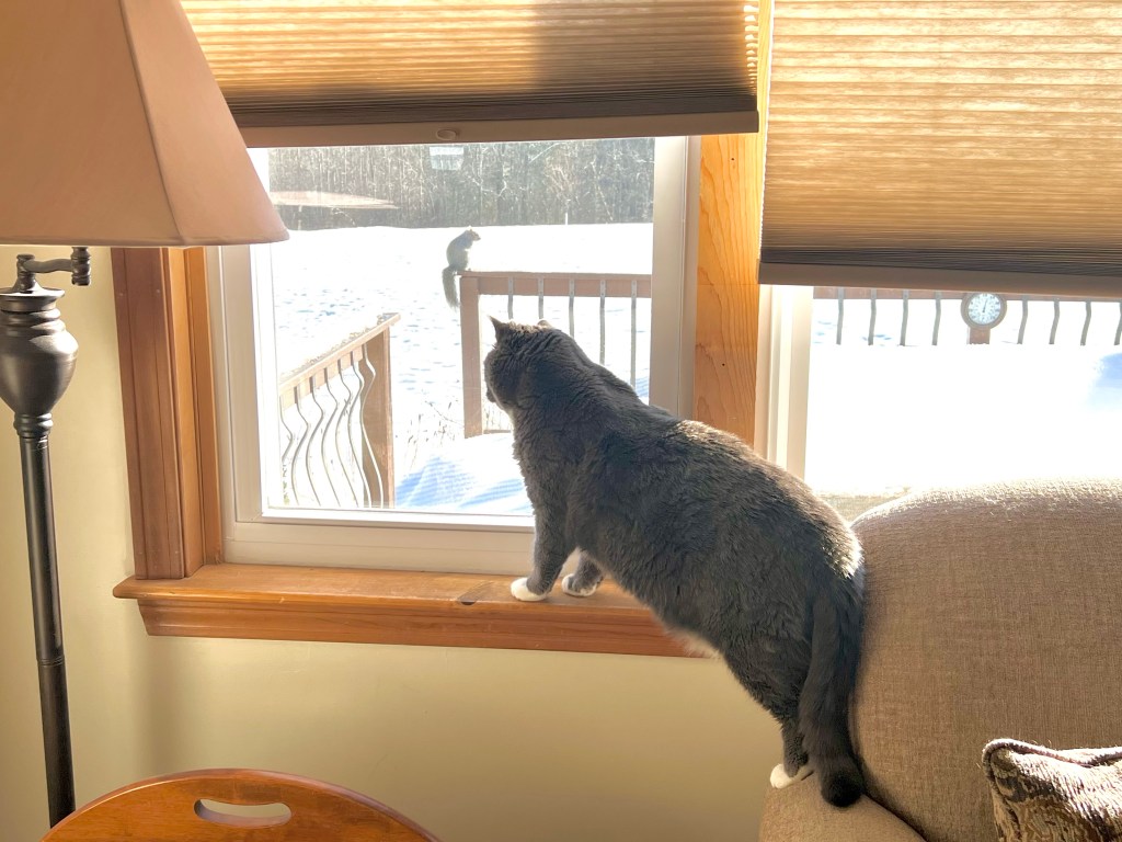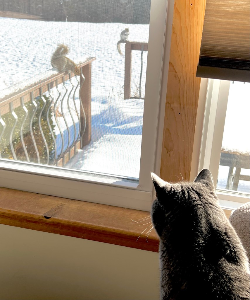 They’ve been mercilessly cavorting on our deck providing hours of free kitty entertainment… as well as frustration.