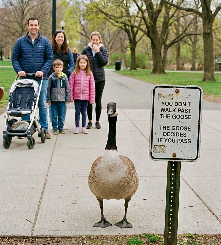 I’ve been chased and pecked at by a mom goose with her brood off to the side. I had waited. I thought she said I could go. I was wrong.