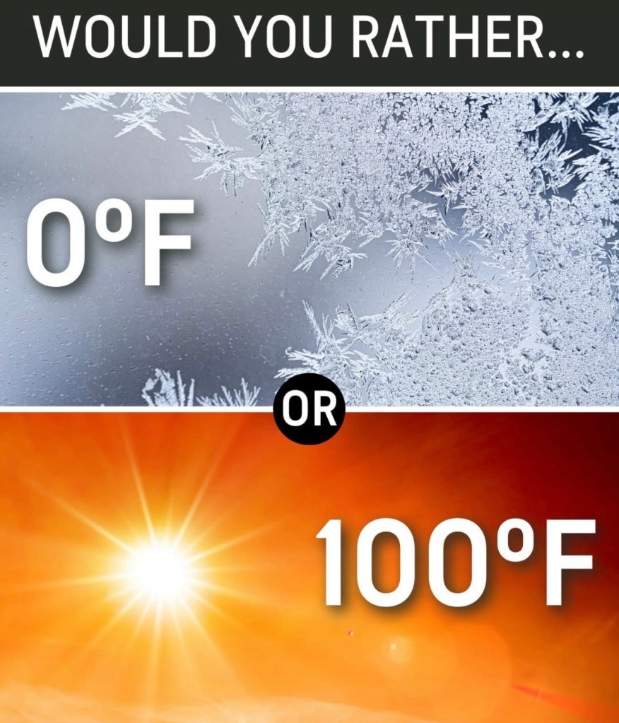 100 degrees in a heartbeat! As a lifelong Phoenician, I’ve never even experienced 0 degrees lol.