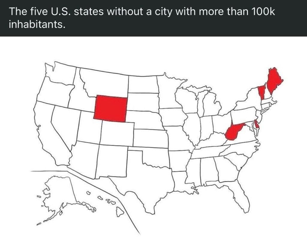 Surprised at Maine and WV having small cities in common. Wonder why?