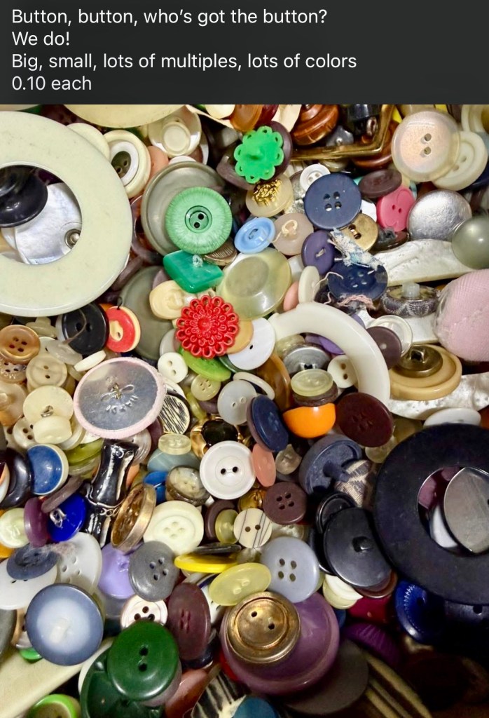 Did your mother have a button box, drawer or tin? I don’t remember my mother sewing very often when I was a child, but we were never allowed to throw out a button.