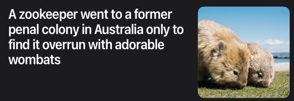 I’m going with the typewriters and the wombats for this week.