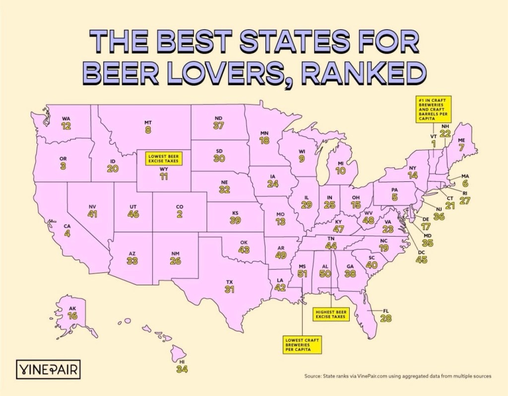 Maine has a craft brewery on every corner, it’s serious business up here so it always astounds me that Vermont outranks us. We’ve driven literal hours there and not seen one.