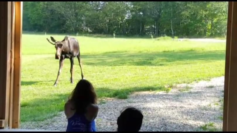 Mooseyoga080118.jpg August 2, 2018 1920 × 1080 Mooseyoga080118.jpg A young bull moose gets close during a yoga retreat at Tops’l Farm in Waldoboro. Checka Antifonario, the owner of Yogaway Retreats, said the moose stayed around for about three hours while she conducted a yoga class.