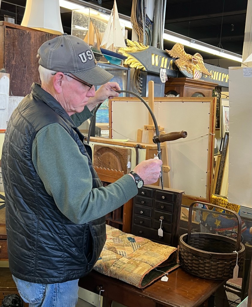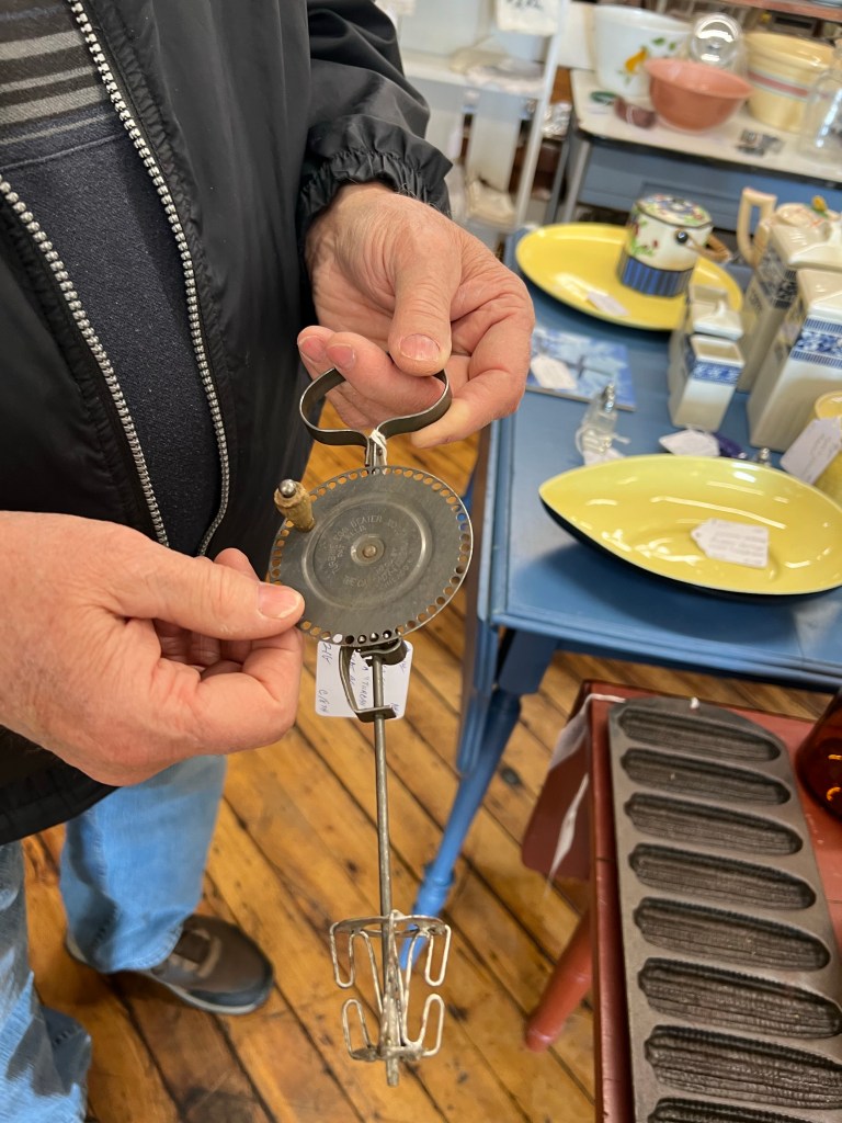 Here’s the husband examining what was tagged as “A turban egg beater from the late 1800’s”