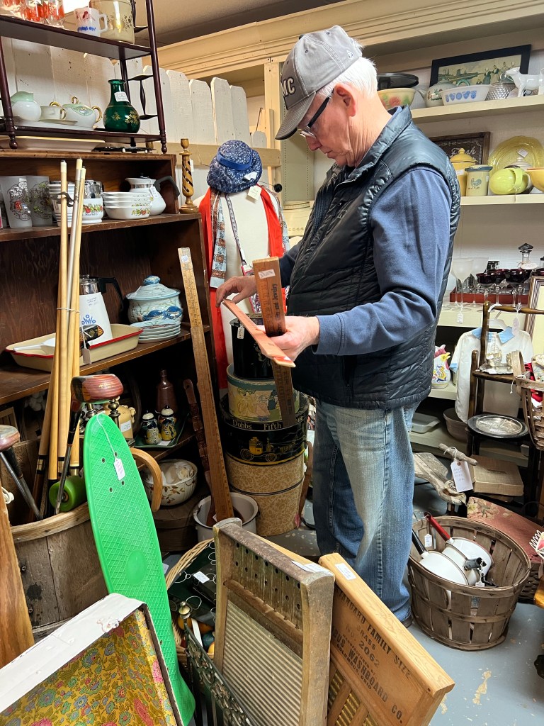 Antiquing for my man is like the U.S. postal service…. Neither snow, nor rain, nor heat, nor gloom of night will keep him from shopping for crap.