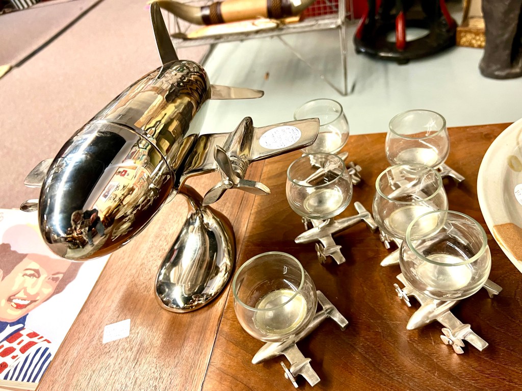 I was really tempted to buy this vintage cocktail shaker and glasses for the man cave. It was even aviation themed which was my husband’s career field.