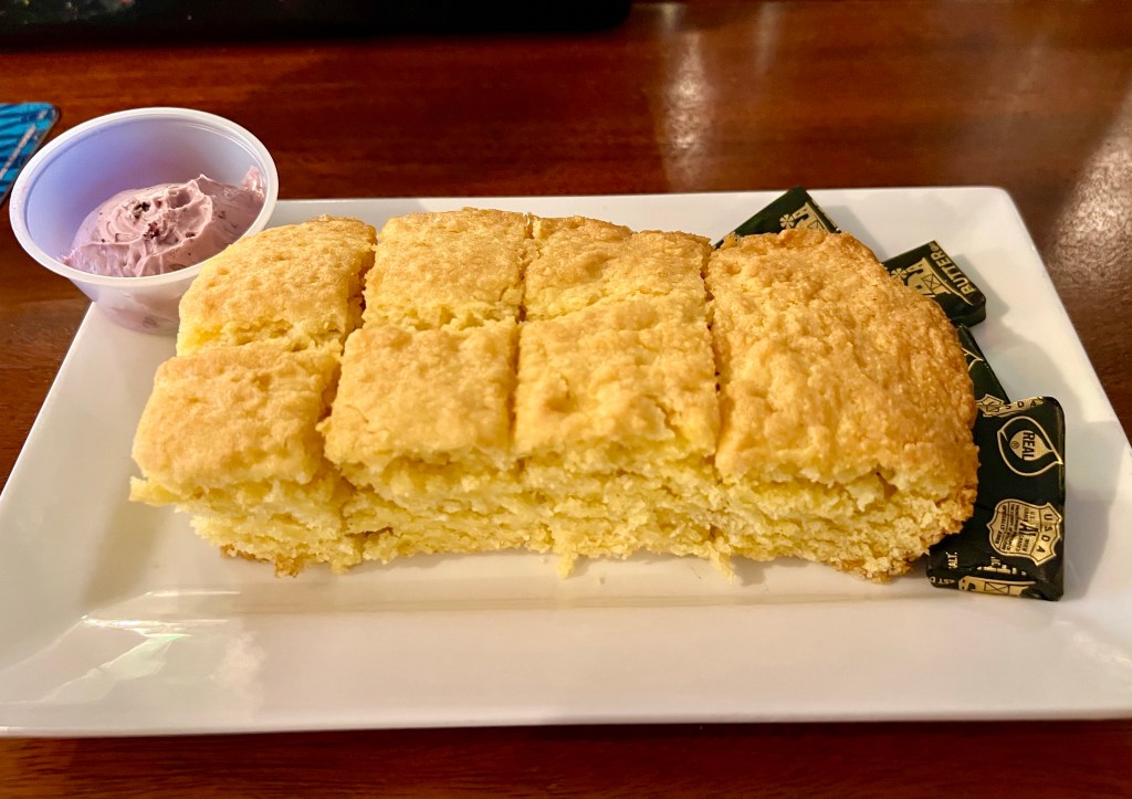 I started with homemade cornbread with blueberry maple butter. Ooh la la! So good I didn’t want to share.