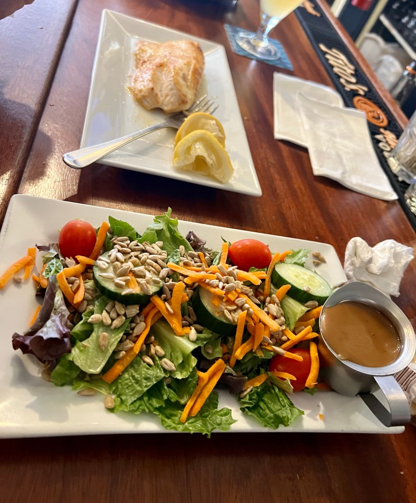 Husband chose a broiled haddock in scampi sauce with a fresh green salad and maple Dijon vinaigrette.