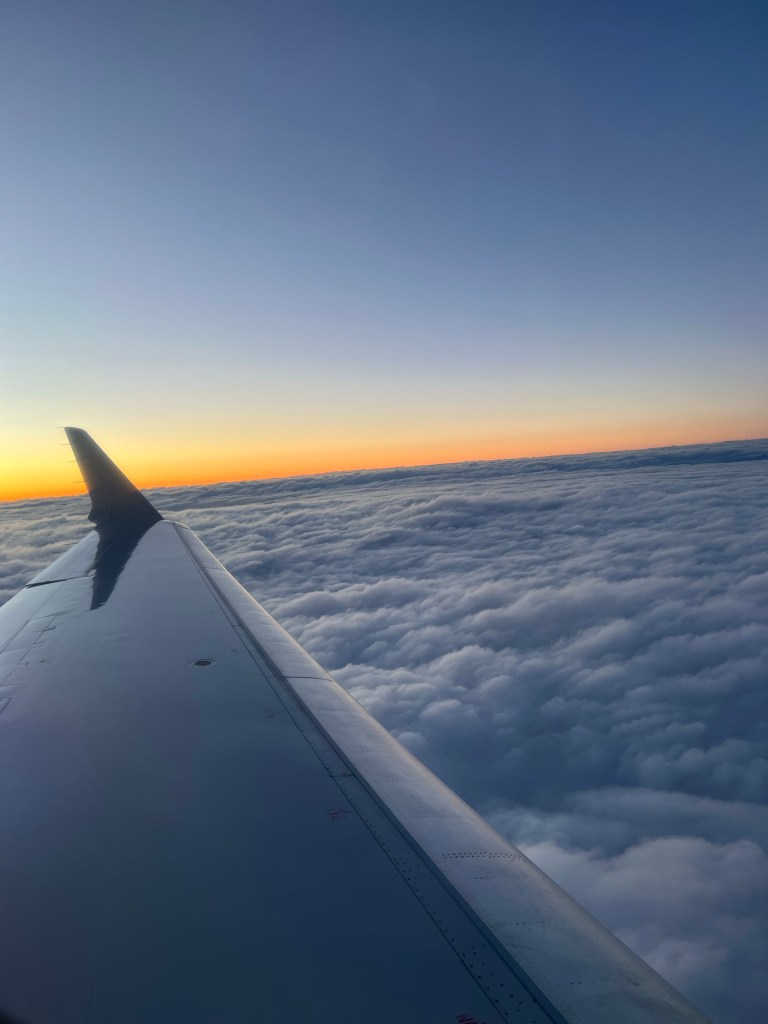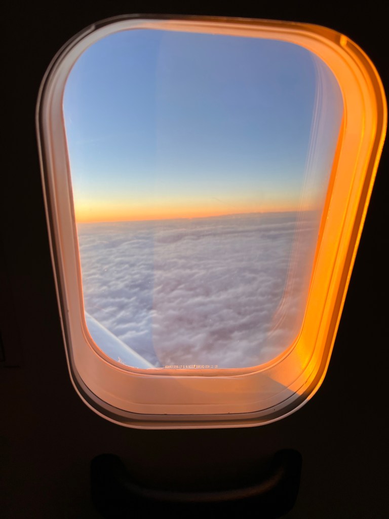 Because of course, out of all the seats on the plane… my husband’s had to malfunction. The cushion was basically free floating and not attached to the seat frame at all. Every time he tried to sit down it just slid out from under him.
