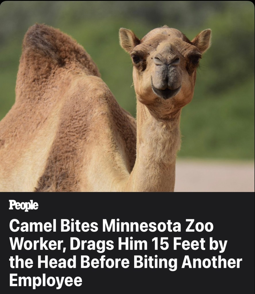 Said camel did not bite him, but it did make its displeasure known and spit on him quite frequently.