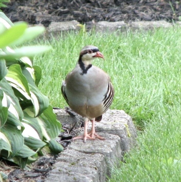 Native to the Middle East and southern Asia, the Chukar was brought as a game bird to North America, where it has thrived in some arid regions of the west. From late summer to early spring, Chukars travel in coveys, but they may be hard to see as they range through the brush of steep desert canyons. They become more conspicuous in spring, when the harsh cackling chuk chuk chukar of the territorial males echoes from the rocky cliffs.