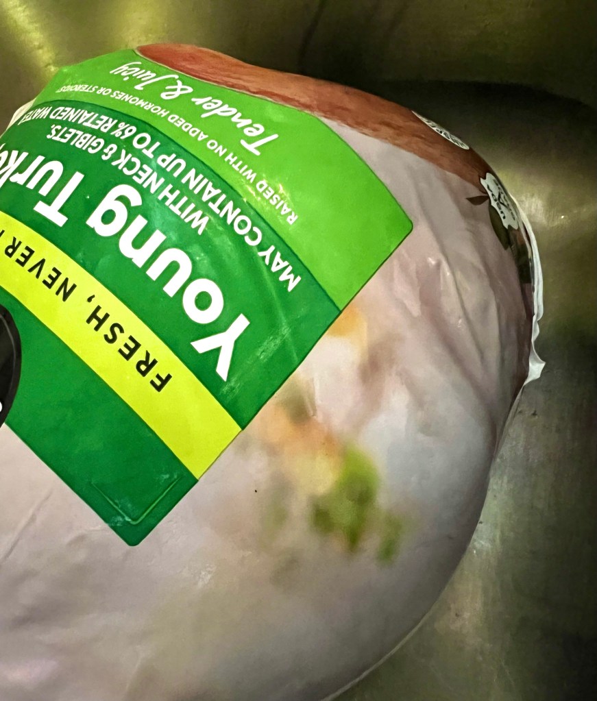 It was a fresh bird I purchased on the 20th with a sell by date of the 26th… but clearly the big storm that knocked out power last week claimed this gobbler as victim.