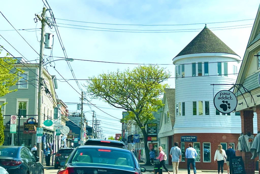 Our resort was right on the harbor… but technically its address and check in office (white turret) is Thames Street, the busiest part of Newport, Rhode Island. One way streets, little to no parking and a constant flow of tourists make navigating the area by car challenging . On our last trip we weren’t able to explore, this time we were staying right in the heart of it.