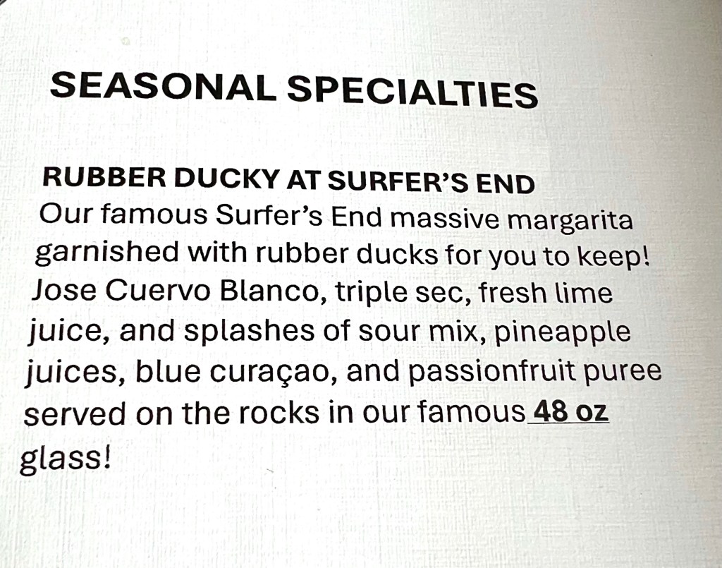 Tempting as a rubber duck margarita was, 48 ounces seemed a bit much… even for me.