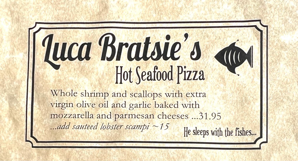 (Fire grilled dough, with caramelized onions, Portobello mushrooms. Topped with garlic herb Boursin and mozzarella cheese). That was a meal in itself… but we had to move on.