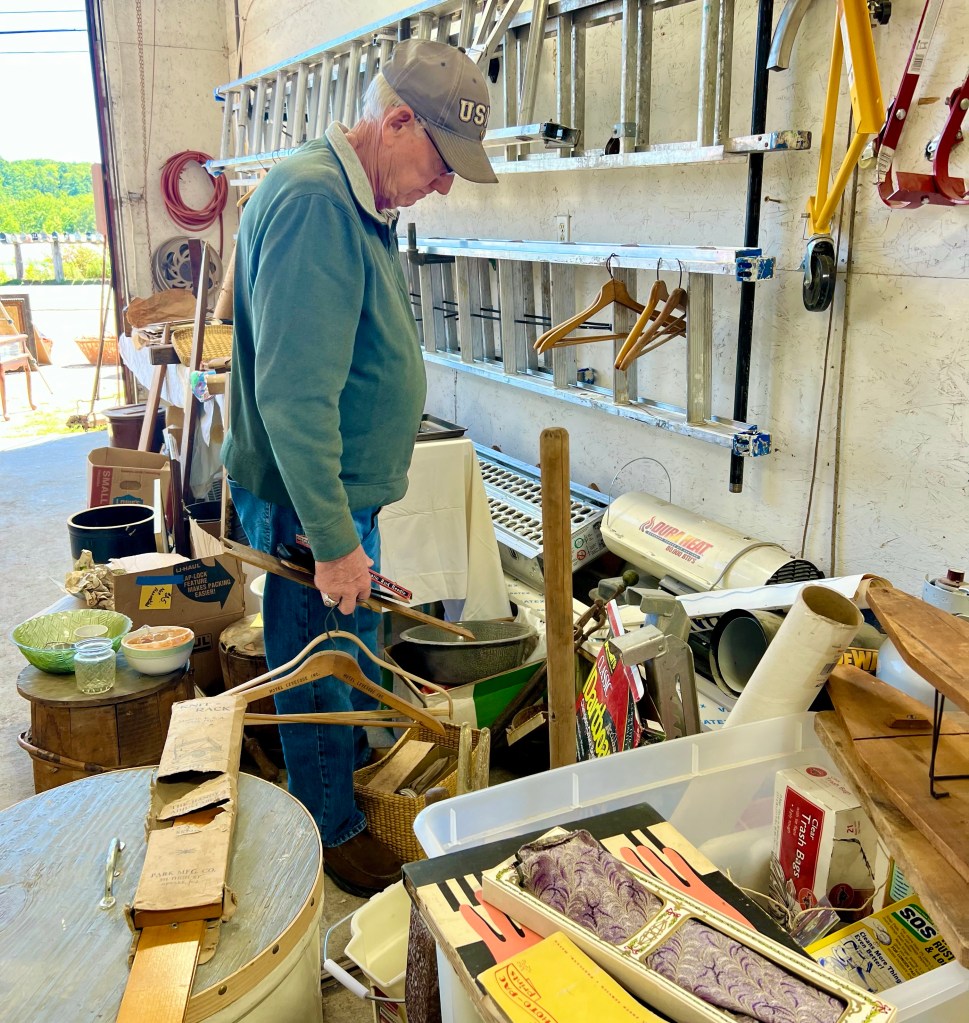 Hangers in hand, he turned around and headed back towards the restaurant but found a small flea market on the way and had to stop.