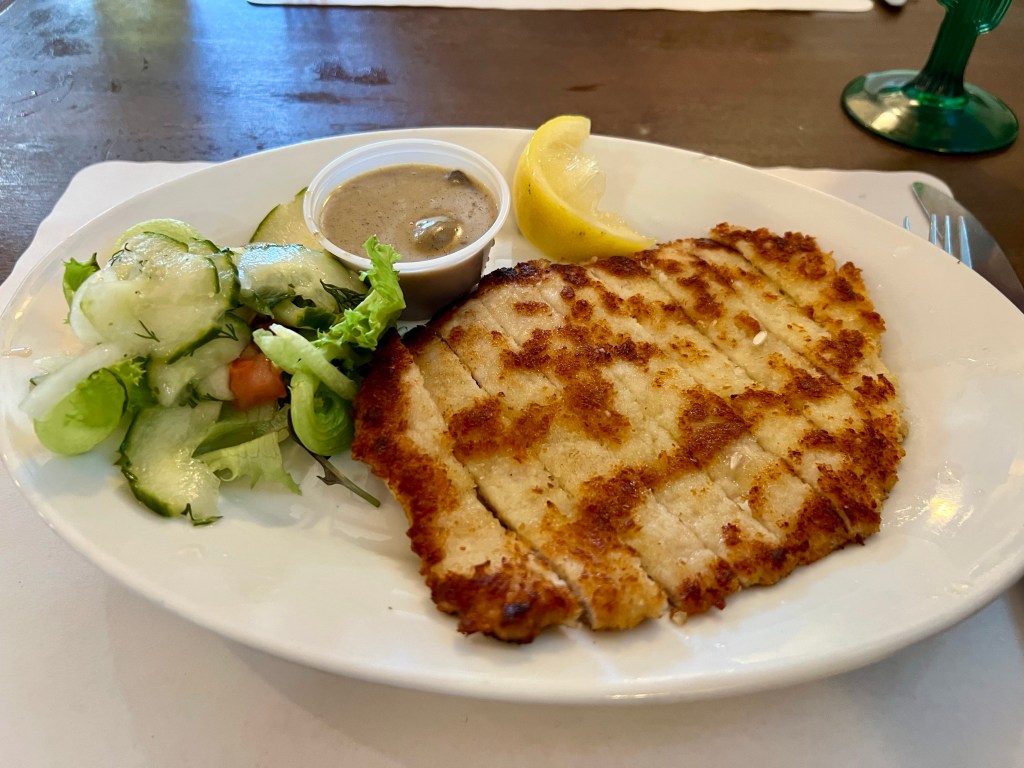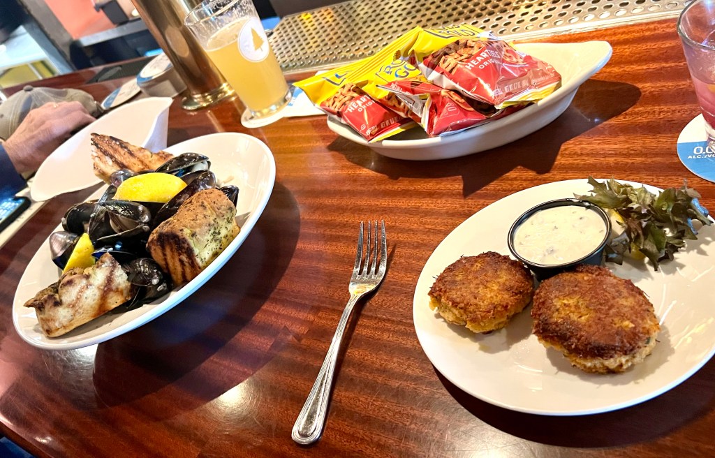 I always order the crab cakes as they’re advertised… and always used to be… the best. This trip? Not so much. Hard, over cooked and over breaded. The husband’s giant mussels were the better choice.