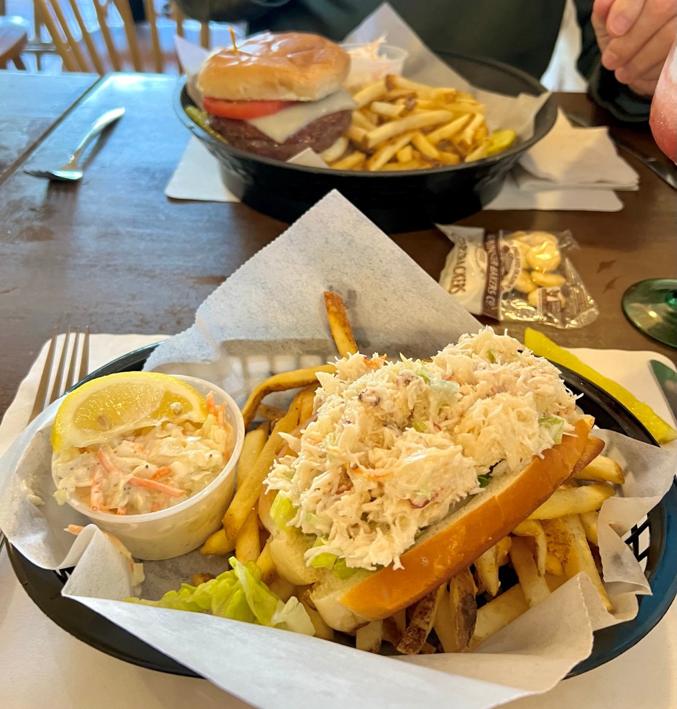 The meals are always amazing, and their fresh seafood is cooked to perfection. I had a massive platter of fantail fried shrimp with baked potato and cole slaw, husband had a garlic butter broiled haddock with butternut squash and a bowl of cottage cheese. Neither of us went away hungry.
