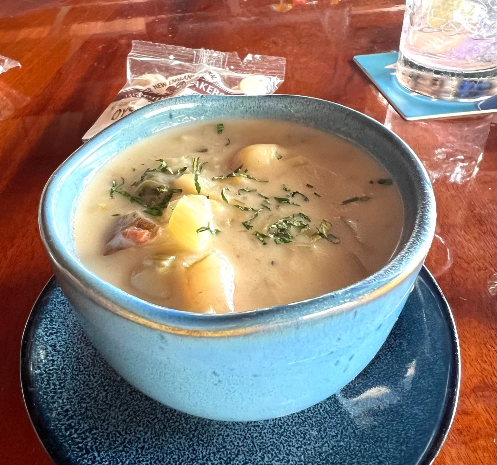 But the clam chowder is to die for. Thick, rich, creamy and chock full of clams … it’s almost a meal in itself. (deckhand lemonade with Tito’s, because yes… they serve alcohol)