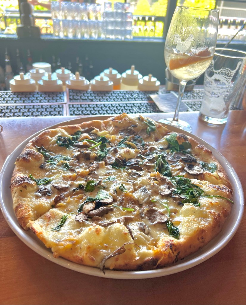 As well as a fabulous garlic white sauce mushroom and spinach pizza.