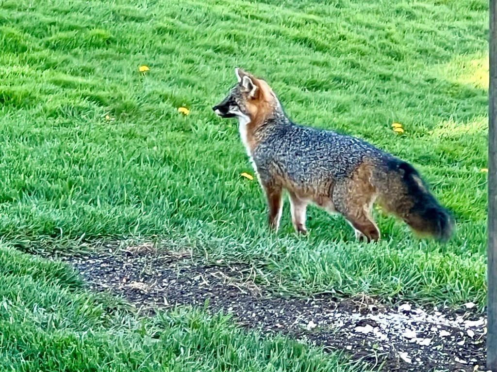 Temperatures are warming during the day, our grass is finally green and the fox are back.