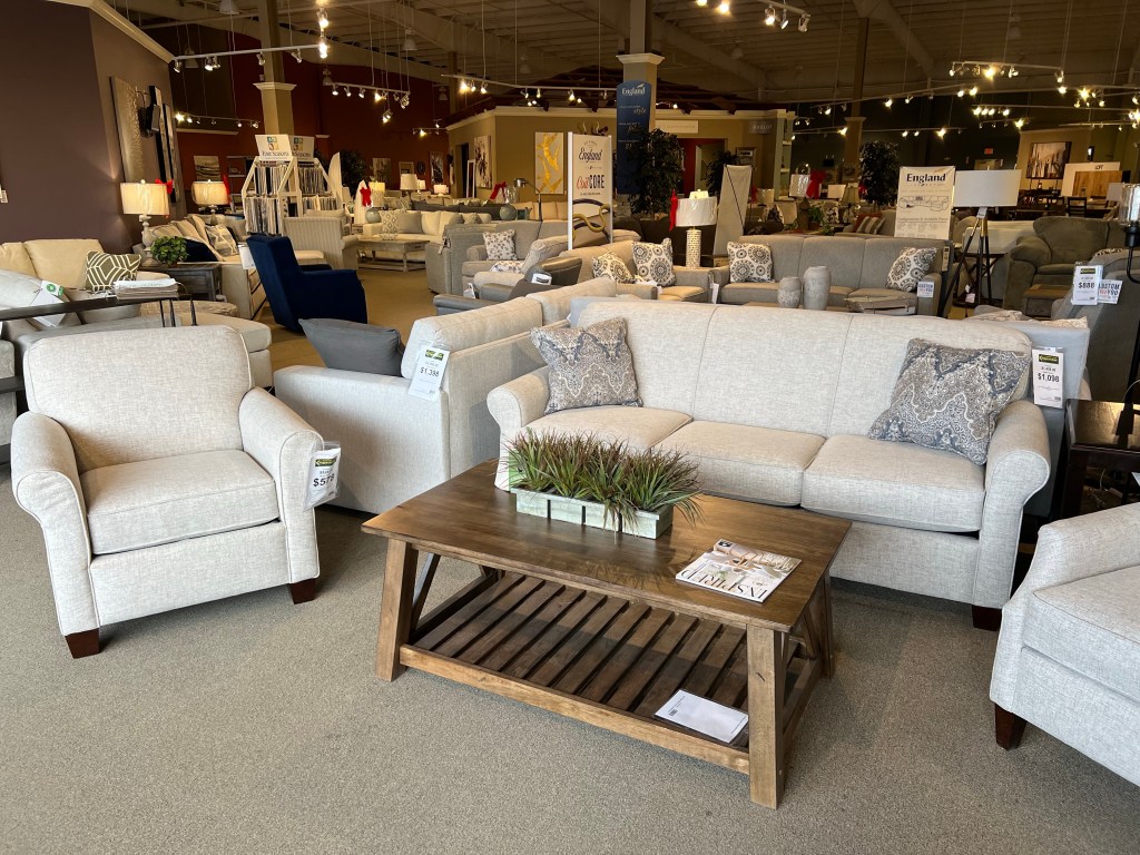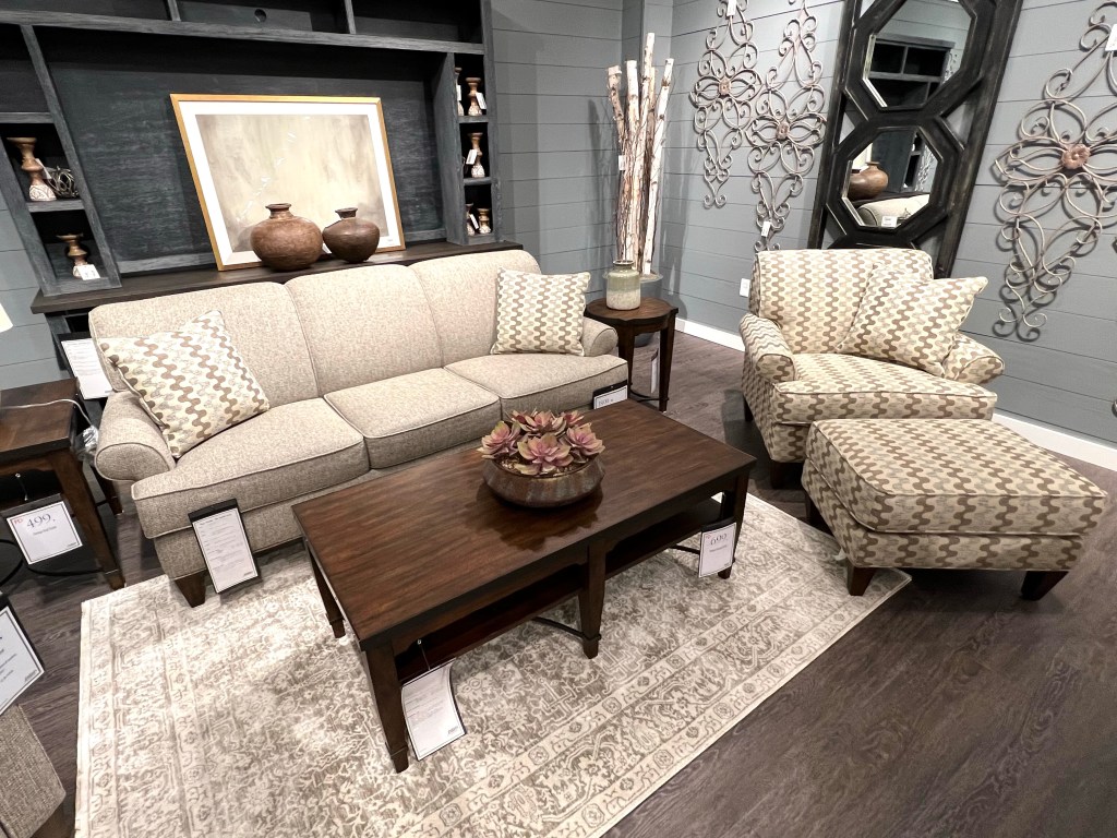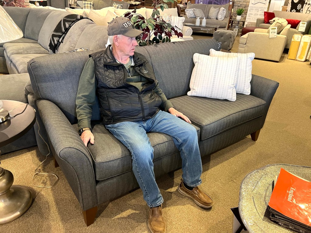 I stepped it up a notch last week and took him to an Ethan Allen showroom. And aside from the fact it was the smallest store we’d been to, they only had one hard backed sofa.