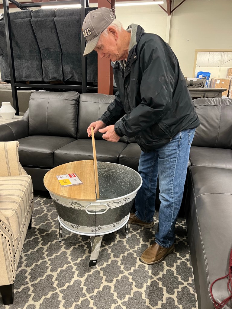 But despite the glaring anomaly, the husband agreed that this set might work. They even had the pattern he’d picked out at a previous store, seen on the back of the chair above.